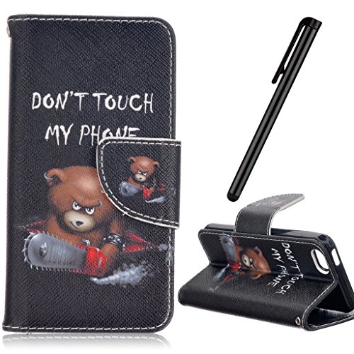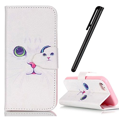 Apple iPhone 5 SE 6C Case,KAWOO Leather Magnetic Flip folding Stand Wallet Case TPU Internal Cover for iPhone 5 SE 6C with Stylus
