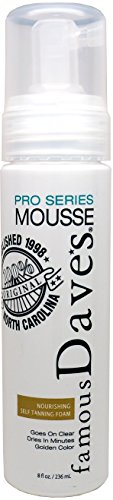 Famous Dave's Tanning Mousse Pro Series Famous Dave's® Pro Series Mousse is a silky and luxurious alternative to a tanning lotion. With each application, your skin is nourished and bathed in natural ingredients. It's unique formula is clear and light and dries almost instantly. Why does our Mousse no longer have a color guide? Simply put, other Tanning Mousses use color guides to reduce streaking. They must be used in order to avoid awful results. Color guides are typically super messy, stain clothes/sheets, and some tanners even contain Sulphates. We know this because we are embarrassed to say that our previous Original and Gold Edition's did. Well, not anymore! No Tint, No Sulphates and NO STREAKING.Feature