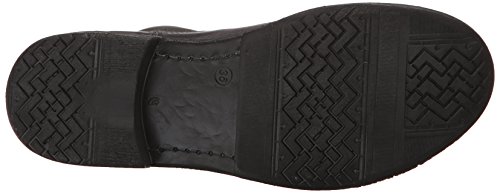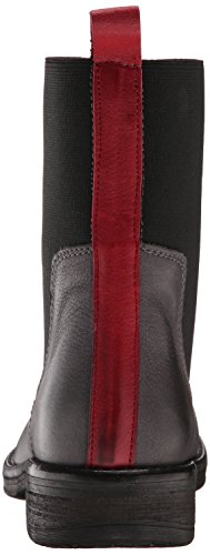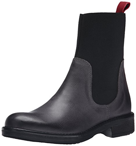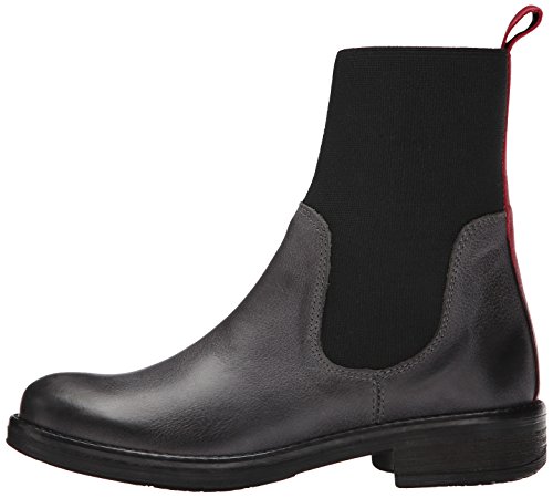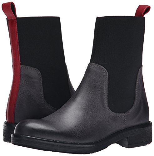 Designed in denmark and made in italy this pull on bootie has a blast of red coming up the back of the boot for an unexpected hit of color.