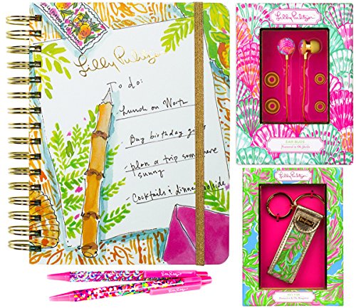 -. Feature : One Lilly Pulitzer Oh Shello Ear Buds with Volume Control, One To Do Planner, One In the Bungalows Key Fob & Two Assorted Pattern Pens / Lilly Pulitzer Oh Shello Ear Buds with Volume Control has a cord length of 48" and 3 different silicone in ear plug tip sizes to choose from. / Lilly Pulitzer To Do Planner is 6 1/2" W x 8 1/2" H in size with 316 pages, with Lilly Pulitzer assorted Pattern Pen with Side Clip and black ink. Perfect match to any Lilly Pulitzer girl on the go! / Lilly Pulitzer In the Bungalows Key Fob is 1.5" W x 4" H in size with Canvas Material and Ring to hook onto Keys, Purse/Handbag or Backpack. / Perfect Gift for any Lilly Pulitzer fan and or collector!