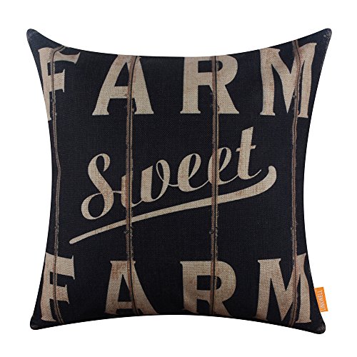 LINKWELL 18x18 inches Vintage Looking Farmhouse Farm Sweet Farm Burlap Pillowcase Throw Cushion Cover (CC1266)