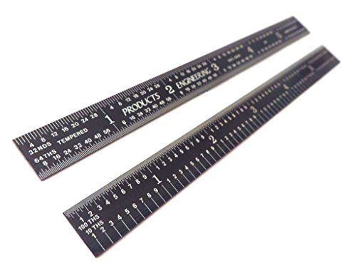 PEC Tools 12" 5R flexible black chrome, "High Contrast" machinist ruler with markings 1/10", 1/100", 1/32" and 1/64"
