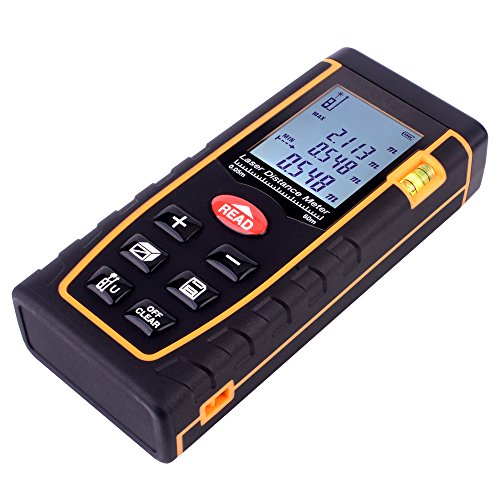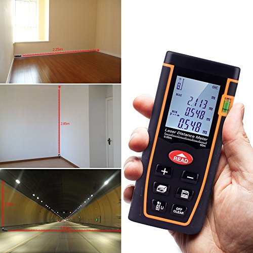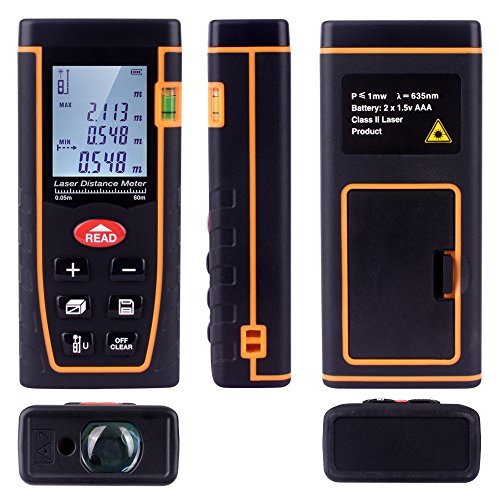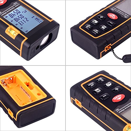 - Professional Laser Measure: long measuring distance UP TO 196 FT, High accurate measuring +/-1.5mm,Multi unit selection of meter, inch and feet, a digital laser distance measuring tool with 4 line LCD display.