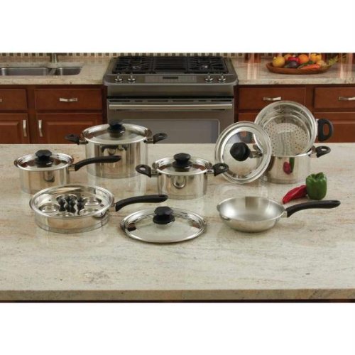-. Feature : WITH LIMITED LIFETIME MANUFACTURER'S WARRANTY / Features 9-Element T304 stainless steel construction, induction cooktop compatible bottom plate, satin finish interior, mirror finish exterior, soft feel phenolic handles, and stainless steel covers with see-thru glass. / Includes 2qt saucepan with cover, 2qt saucepot with cover, 3qt saucepot with cover, 6qt saucepot with cover, 8" steamer, 9-1/2" frypan with cover, 8" frypan, and egg rack with 5 cups.