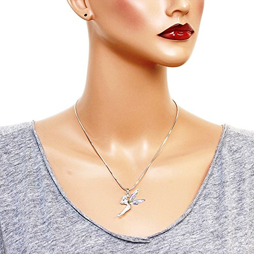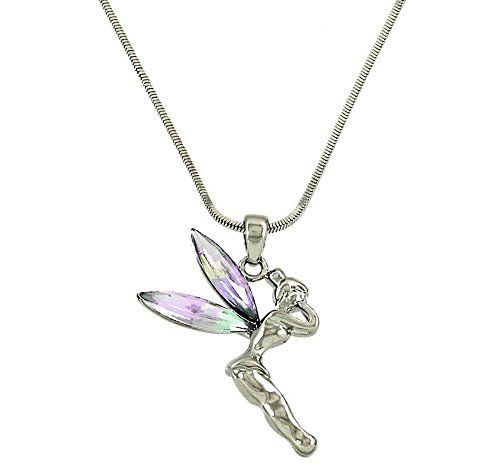 Here is an adorable Disney Fairy Tinkerbell pendant necklace . This beautiful Tinkerbell has AB Crystal Wings . The pendant size is about 1" , chain is 18". This Beautiful Tinkerbell Necklace comes in a nice Gift Box ready for gift giving .Feature