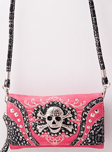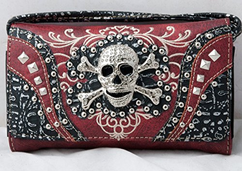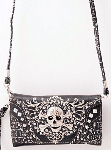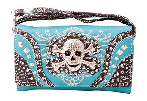 -. Title : HW Collection Western Studded Rhinestone Skull Crossbody Wristlet Clutch Wallet