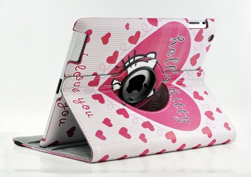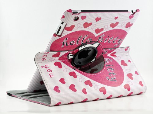Hello Kitty Design 360 Degree Rotating PU Leather Hard Case for Apple iPad 4 3 2, Mini 1 2 3 and iPad Air (iPad Mini 1 2 3, Color 1)
