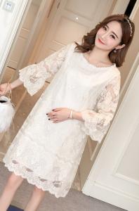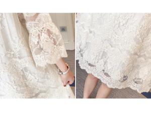 レースワンピース フレア袖 ガーリーワンピース 大人ガーリー 刺繍 春夏 マタニティドレス オシャレ プチプラ