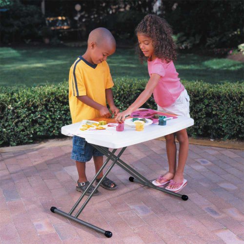 Lifetime personal table top surface is 30" long x 20" wide. Adjustable height settings give you many options and can accomodate just about anyone. Constructed of high-density polyethylene and are stronger, lighter and more durable than wood. Our unique table offer a comfortable surface for any event or room configuration. Bronze Hammertone 3/4" Round Folding Frame for easy storage and stability.