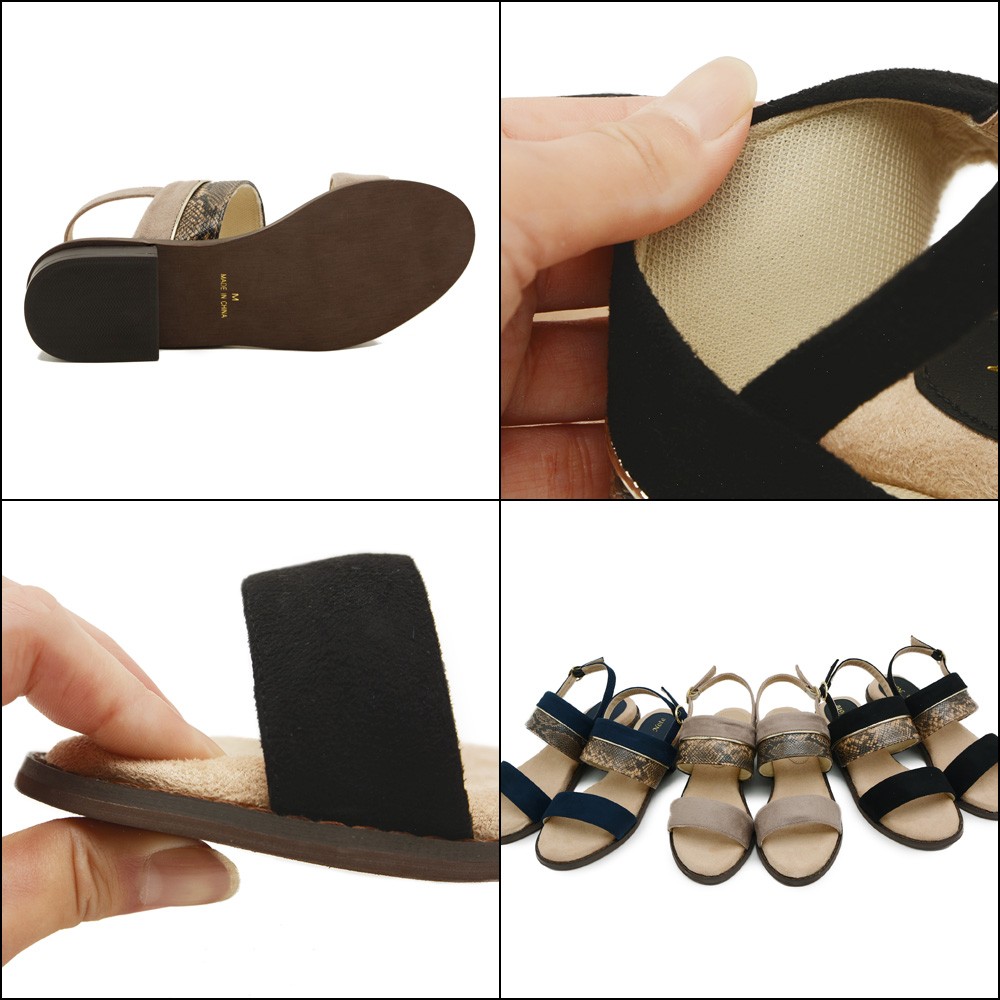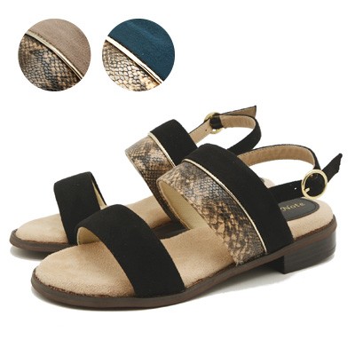後ろアッパーはスエード調生地とパイソン柄のMIX。