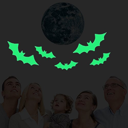 Creative Bats Skin Wall Sticker Window Decals Halloween Decoration Glow in the Dark, Home Decor Removable Art Mural Baby Nursery Room