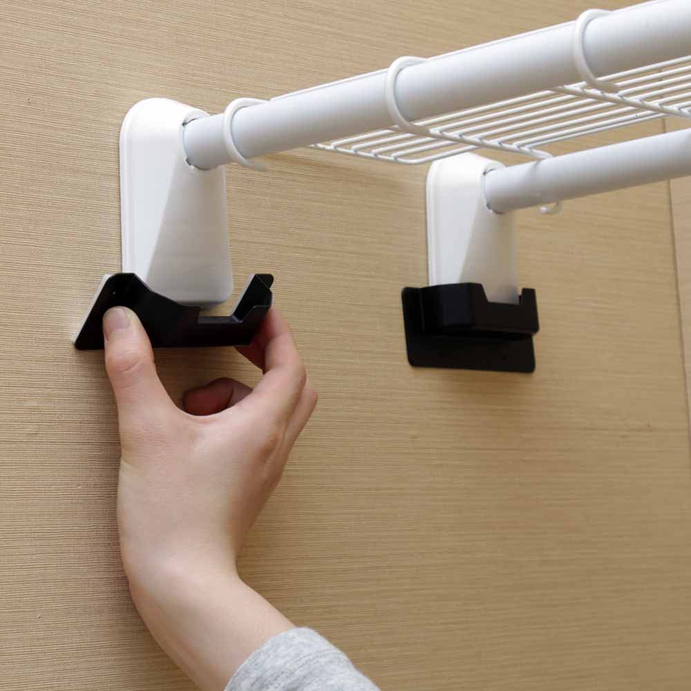 It is a flexible shelf that can be fixed firmly to the wall without using screws or nails.