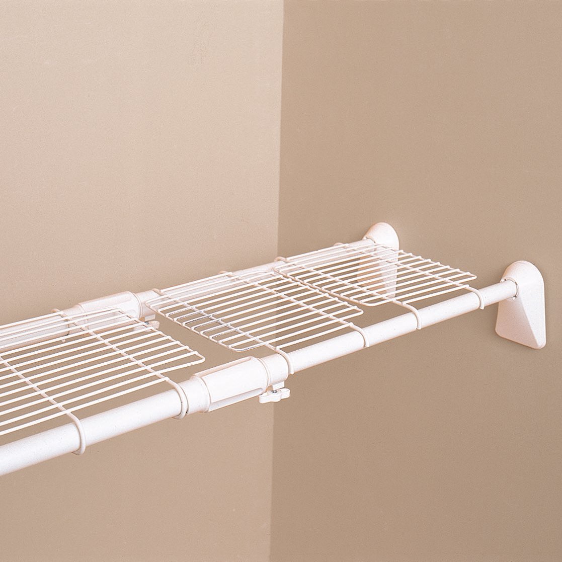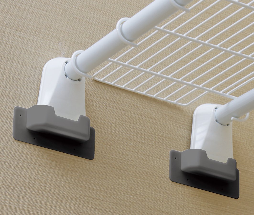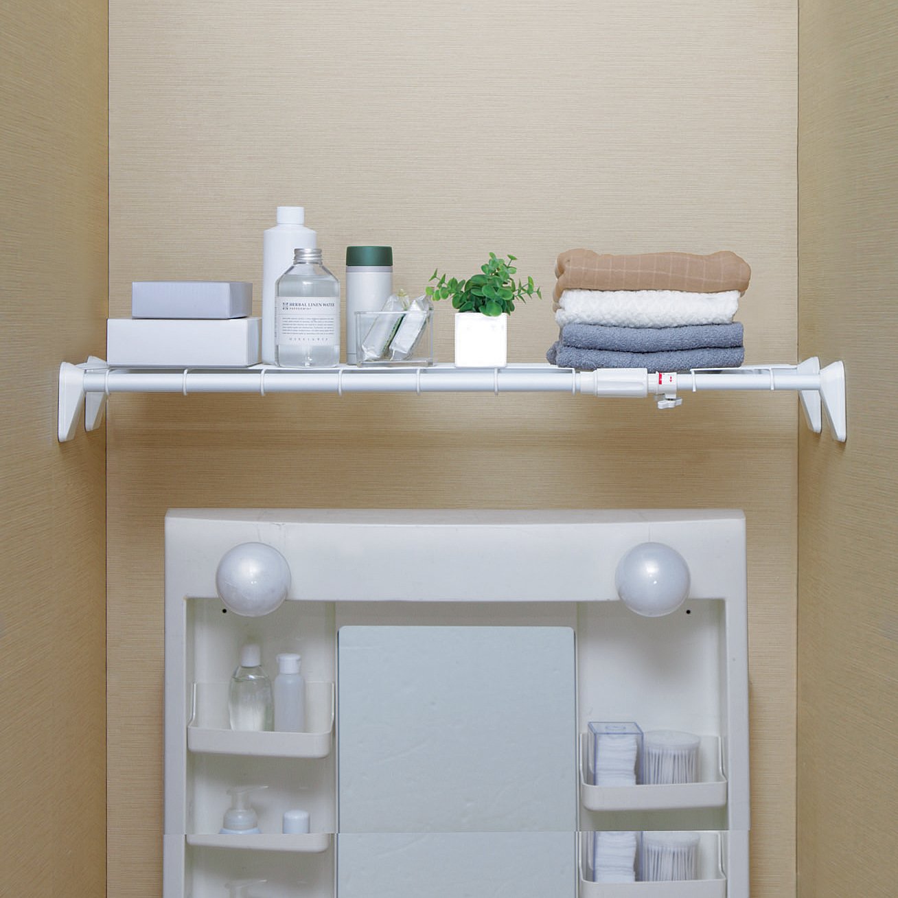 It is a telescopic shelf that can be fixed firmly to the wall without using screws or nails