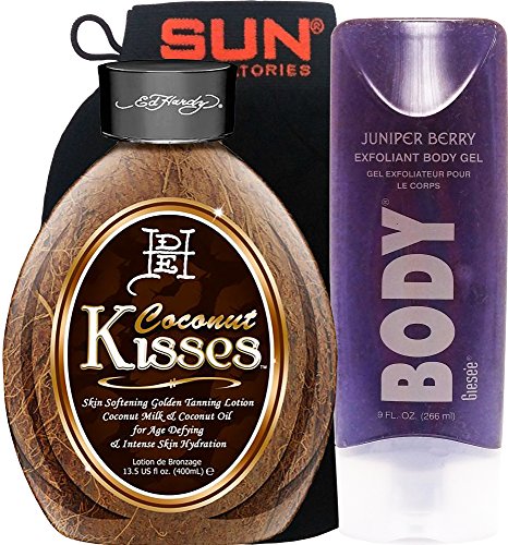 1. Ed Hardy Coconut Kisses Golden Tanning Lotion, 13.5 oz1. Juniper Berry Exfoliating Body Scrub 9 oz1. Body Exfoliation Glove Tan Remover