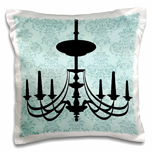 3dRose Black Chandelier Against A Light Blue Damask Background - Pillow Case, 16 by 16-inch (pc_60988_1)
