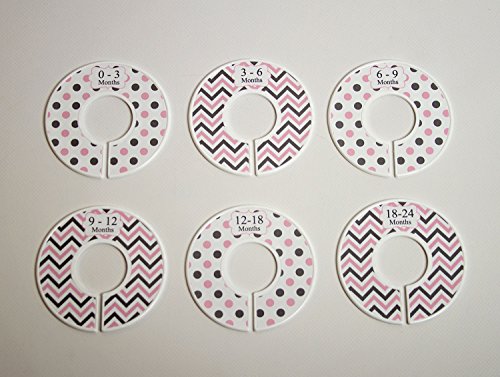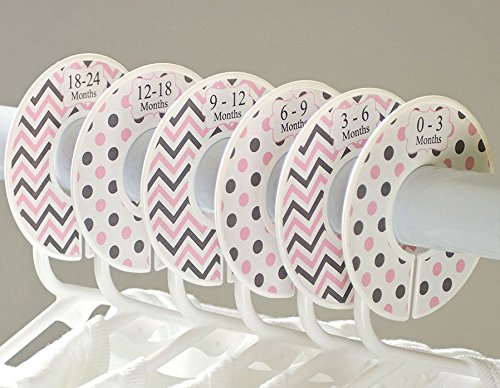 Closet Doodles C105 Pink Gray Polka Dot Chevron Girl Baby Closet Dividers Set of 6 Fits 1.25inch Rod