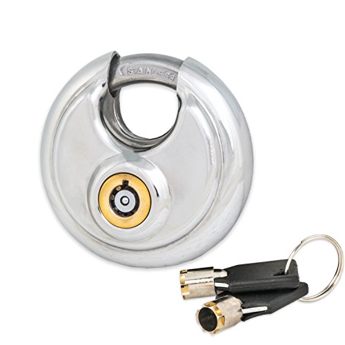 -. Feature : The perfect solution for those needing robust protection - hidden shackle eliminates vulnerable points on the padlock / Ideal for outdoor applications - exterior is constructed out of rust resistant stainless steel / Resists picking and drilling with high security tubular keyway / Available keyed alike so that multiple disc locks can be accessed with the same key / Great for shipping containers, storage units, trucks doors, gates and more