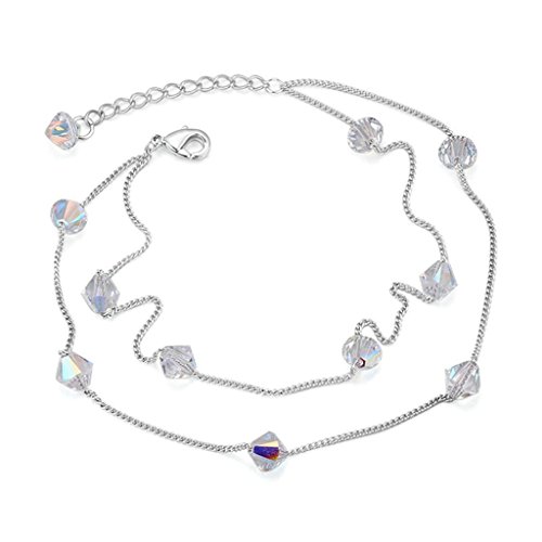 -. Title : Adisaer Gold Plated Womens Anklet Double Chain Cubic Zirconia Adjustable Bracelet Multicolor Foot Jewelry