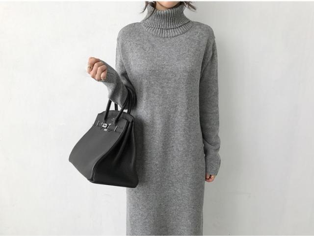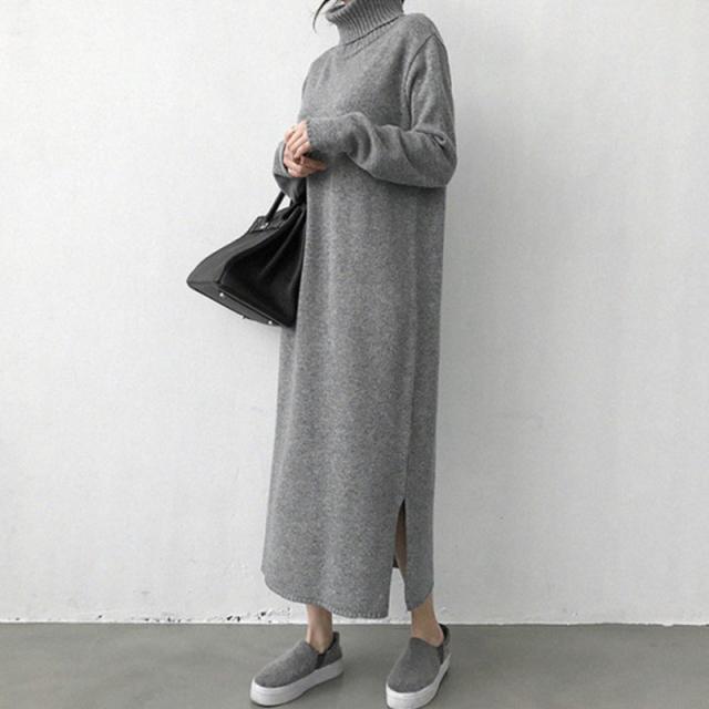 マキシ タートルネック 長袖 無地 ロング カジュアルスタイル シンプル