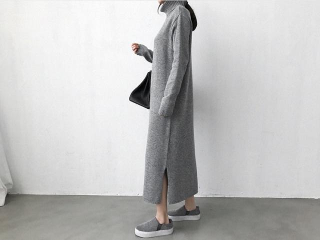一枚でコーデが完成するロングニットワンピース♪