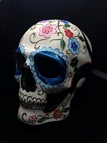 -. Brand : Zeckos -. ClothingSize : Adult one size fits most -. Color : Blue -. Department : mens -. EAN : 0609015836002 -. Feature : 10 1/2 in. High, 7 1/4 in. Wide, 5 in. Deep / Made From Resin / Colorful Hand-Painted Finish / Attached Ribbon Strap Ensures a Great Fit / Fun as a Wall or Table Decoration -. Label : Zeckos -. Manufacturer : Zeckos -. Model : M3174E -. MPN : M3174E -. PackageQuantity : 1 -. PartNumber : M3174E -. ProductGroup : Apparel -. ProductTypeName : ADULT_COSTUME -. Publisher : Zeckos -. Size : Adult one size fits most -. Studio : Zeckos -. Title : Colorful White and Blue Floral DOD Sugar Skull Style Halloween Mask -. UPC : 609015836002