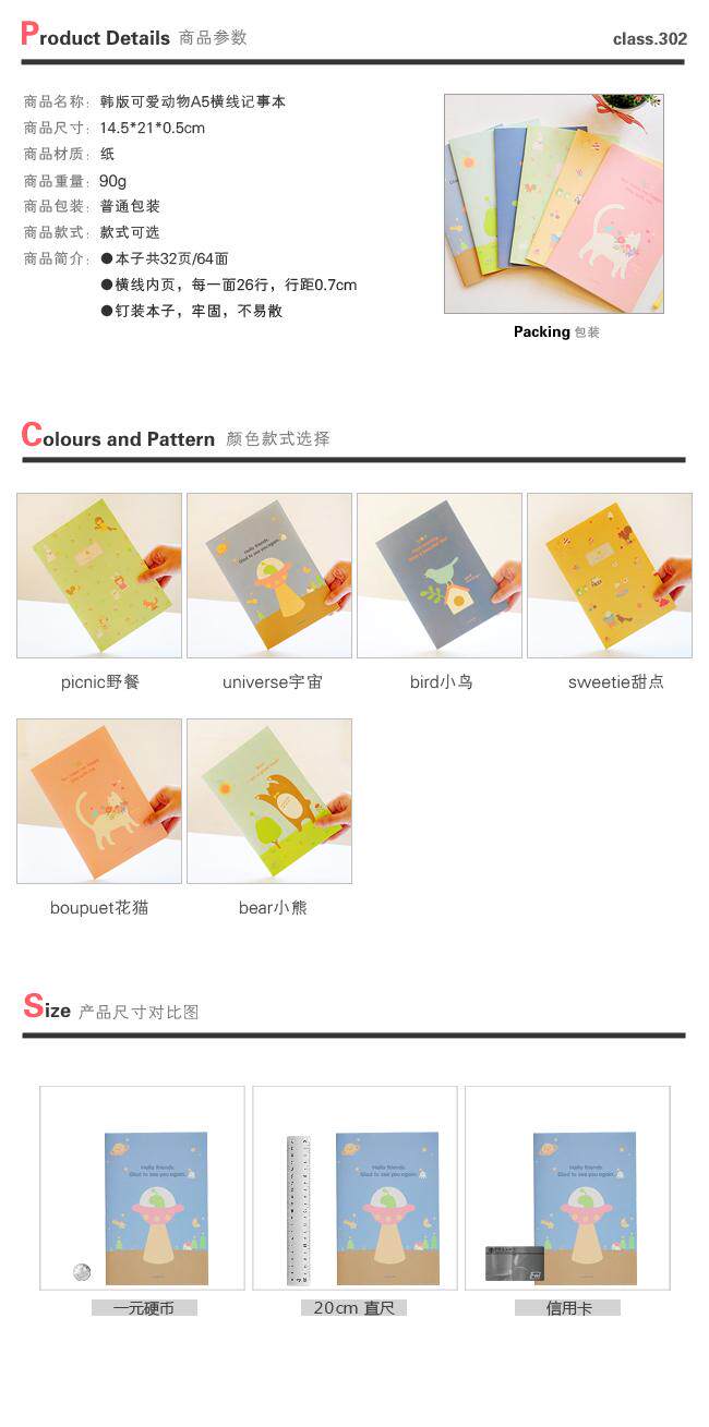 韩版可爱动物A5 A6横线车线本 记事本 小本子