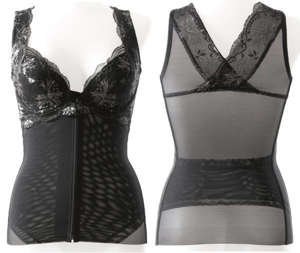 ブラジャーとキャミソールが一体型になった下着です。前ファスナーで着用も楽々♪シェイパー機能付きのキャミ部分はお腹のお肉を程よく引き締めてくれます。