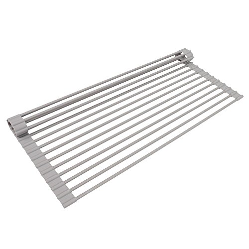 -. Title : Ewolee Roll-up Dish Drying Rack, Over the Sink Dish Drying Drainer Silicone-coated Stainless Steel Dish Rack Kitchen Dish Drainer Rack (Grey, Large)
