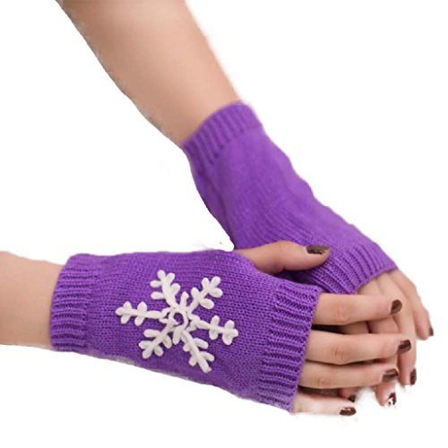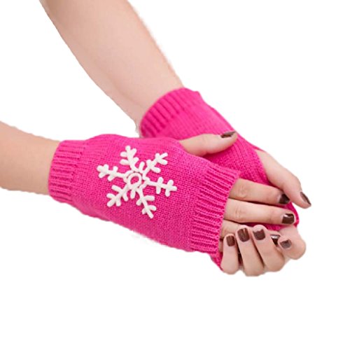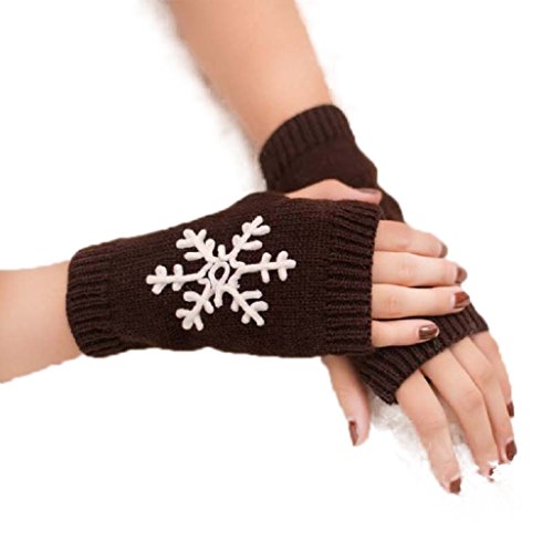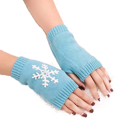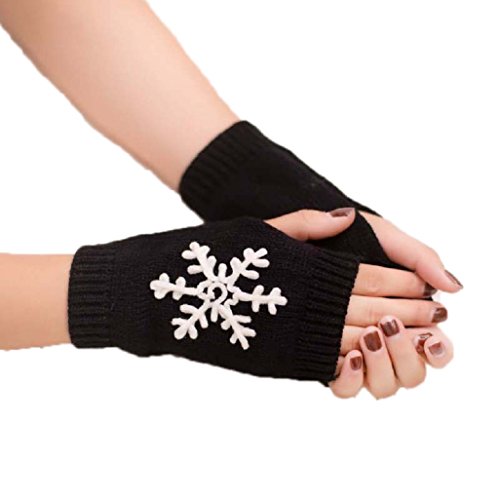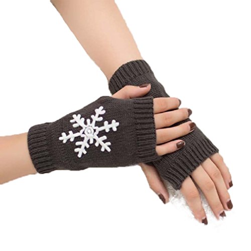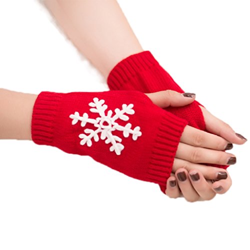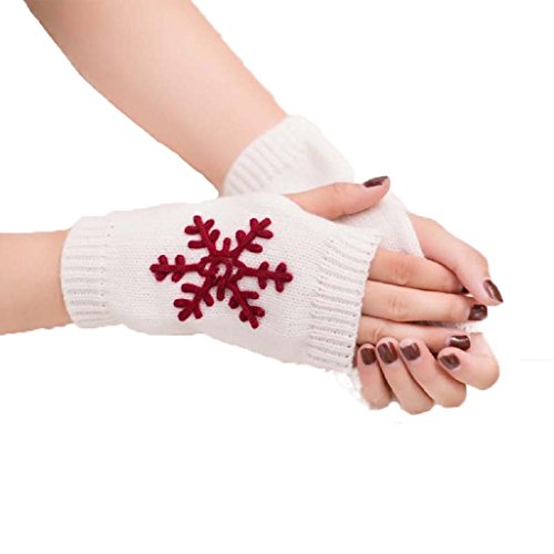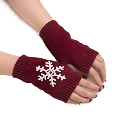 | (Top Cheer)/Accessories/Cold Weather Accessories/DIRECT FROM USA/Top Cheer Winter Knitted Christmas Snowflakes Embroidery Half Fingerless Lady Gloves |