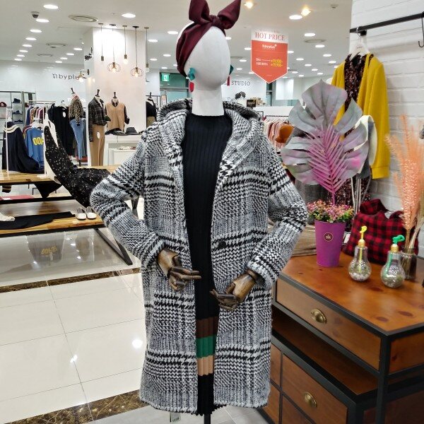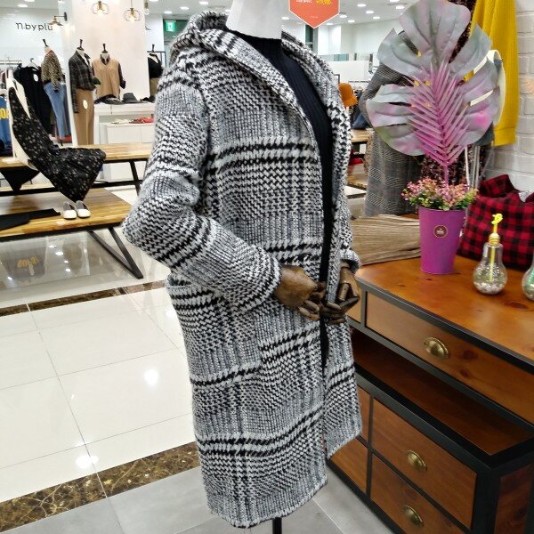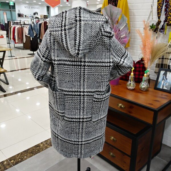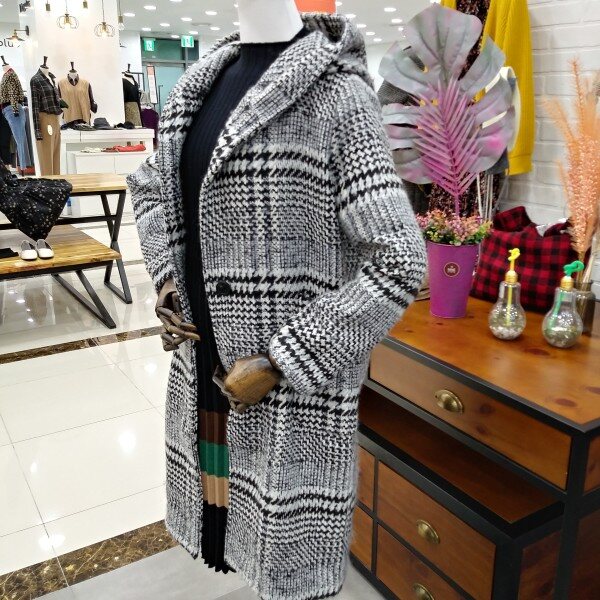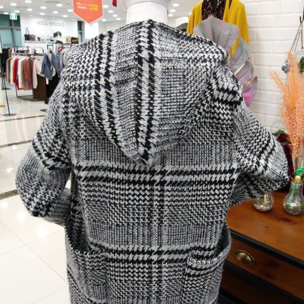 후드가 달린 원버튼 체크코트로 캐주얼하게 입기좋으며 적당한 두께감과 큼직한 포켓이있어 활용도 좋은 후드코트 이에요
