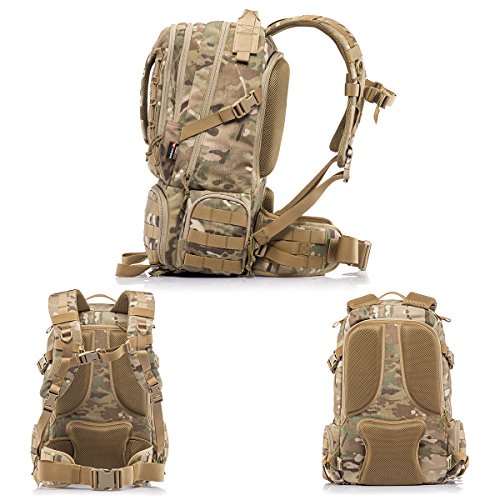 -. Feature : -Size: 25W x 55H x43D CM /9.8W x 21.6H x17D inches;Capacity: 45 L ;Weight: 2.13 kg/4.7lb / - Materials: Outer fabric 1000D nylon /CORDURA/MULTICAM, world-renowned for its lightness and strength, YKK zips,UTX buckles,nylon webbing,420D nylon lining. / -Nighthawk: two faces, can change: face 1 quick and convinent handle; face 2 MOLLE systerm. / - "Air flow" system is maintained regardless of the breathable and comfortable. / - Shoulder straps and hip straps according to the user's height, body type, freely adjustable
