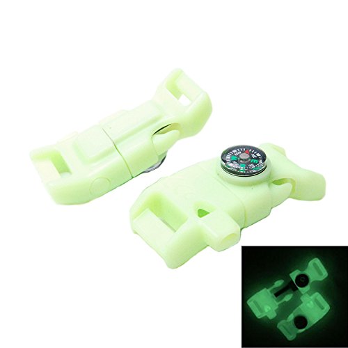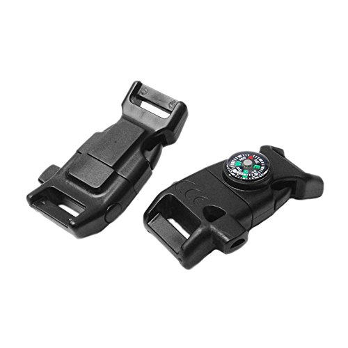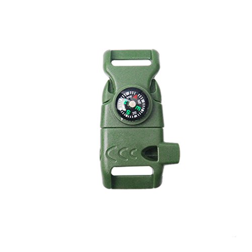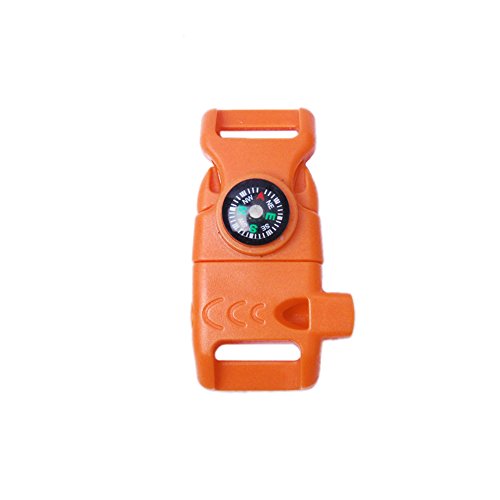 -. Feature : *** Product type: Compass Fire Starter Whistle Buckle ; Size: 52*29mm, Webbing size: 5/8"(15mm) / *** Material type: Plastic(POM), Magnesium, Metal / *** You will have set of survival tools that will be able to help you in emergency. Using a compass that will guide you, a fire starter that'll help give you sparks / *** Stylish accessory to own when equipped with your survival gear, and men's & women's outdoor hunting gear. Also goes well with hiking and camping backpacks / *** If you are not completely satisfy with the product please contact us that will give you a solution.