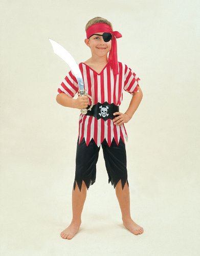 -. Feature : Boys pirate fancy dress costume / Includes shirt, pants, belt and headband / Ideal for fancy dress or school plays / Colour: Red/White/Black / Size: Medium