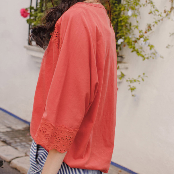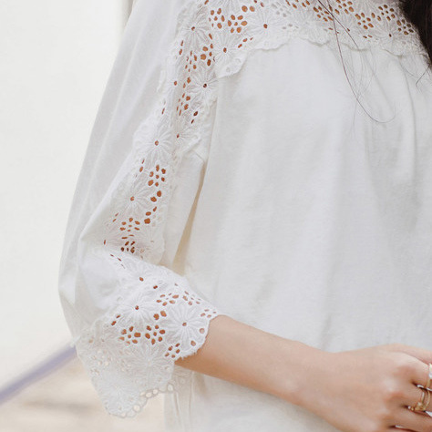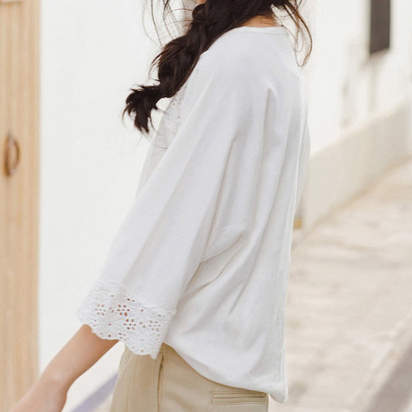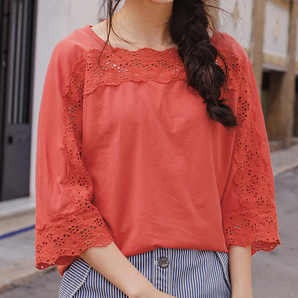 シンプルなデザインながらレースがかわいいカラートップスです☆