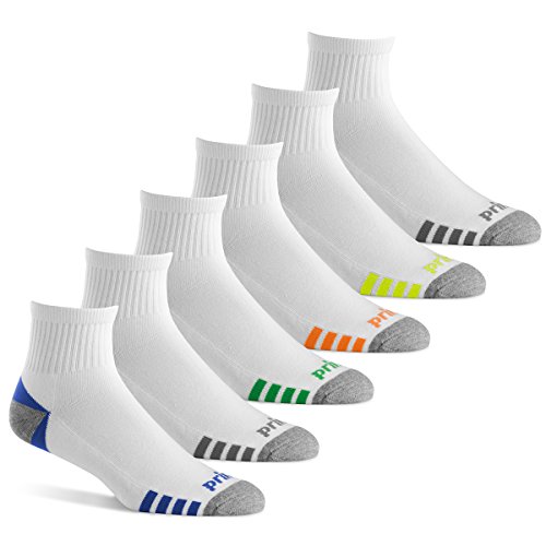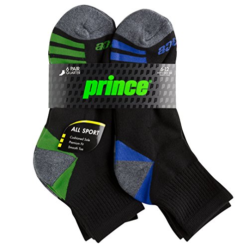 -. Binding : Misc. -. Brand : P.R.Ince -. Feature : PREMIUM COMFORT FIT: The cushioned sole gives P.R.InceTM athletic socks a soft, padded feel, and the spandex blend forms to your foot for superior shape retention, support, and compression. / MOISTURE WICKING: Breathable zone mesh design coupled with our lightweight synthetic blend increases ventilation to control moisture and keep your feet cool and dry during sports and exercise. / SMOOTH TOE SEAM: Eliminates bulky seams to reduce abrasion and provide extra blister protection. / 100% SATISFACTION GUARANTEE -. IsAutographed : 0 -. IsMemorabilia : 0 -. Label : ILNA -. Manufacturer : ILNA -. ProductGroup : Sports -. ProductTypeName : SPORTING_GOODS -. Publisher : ILNA -. Studio : ILNA -. Title : P.R.Ince Men's Athletic Quarter Socks for Sports, Running, Tennis, and Casual Use (6 Pair Pack)