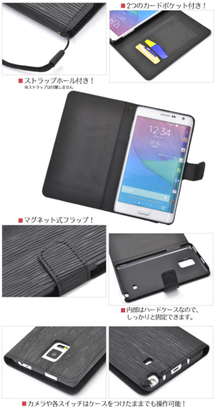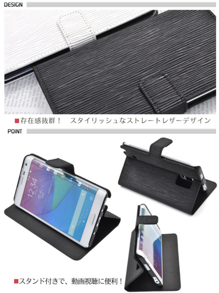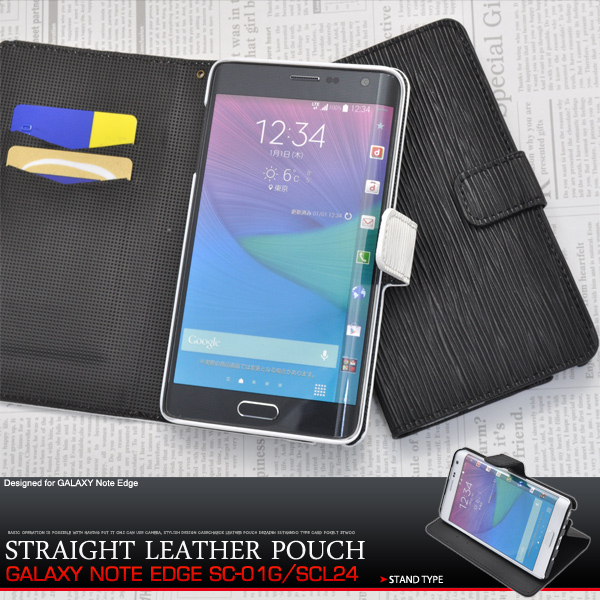 ストレートレザーデザインのGalaxy Note Edge用スタンドケースポーチ。