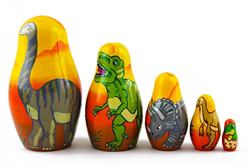 -. Title : Matryoshka Babushka Russian Nesting Wooden Doll Dinosaurs Prehistoric Epoch Babouska Matrioska Stacking 5 Pcs