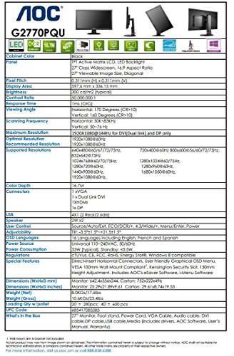 - Title : AOC G2770PQU 144hz, 1ms, Ultimate Performance 27-Inch Professional Gaming Monitor