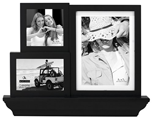 Malden International Designs Black Collage Shelf Picture Frame, 3 Option, 1-3x3 & 1-3x5 & 1-5x7/6x8, Black
