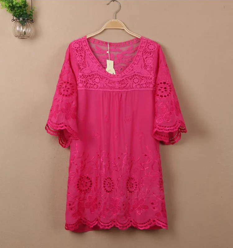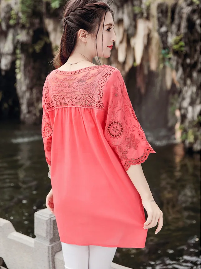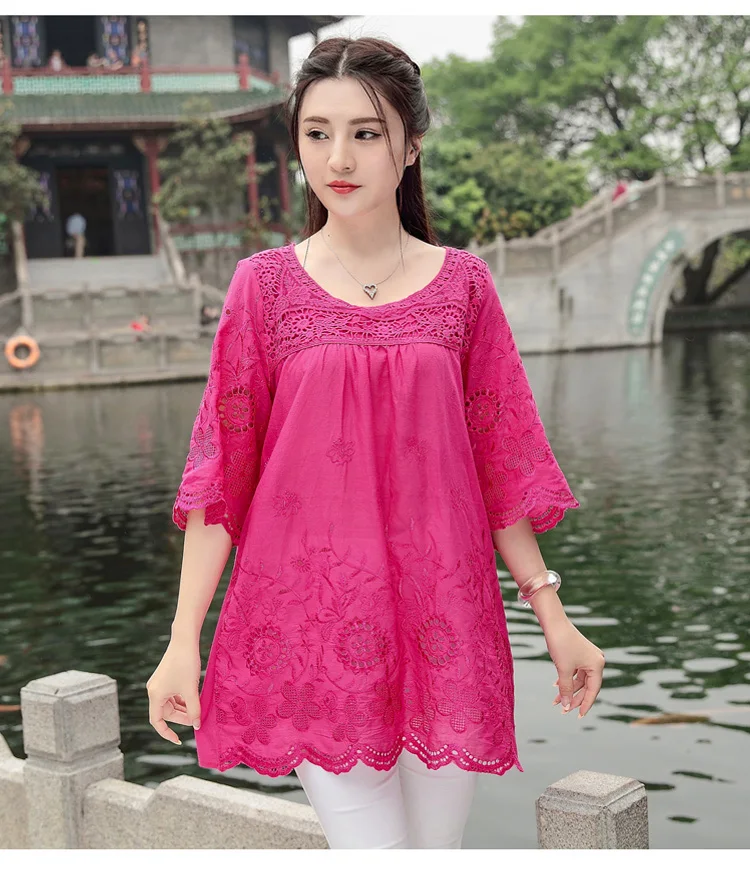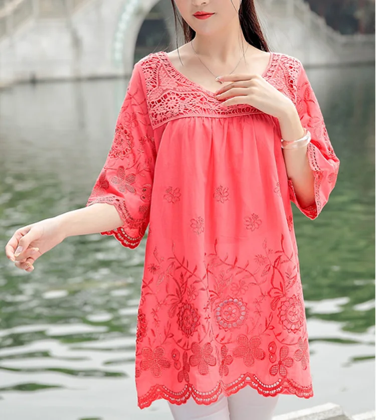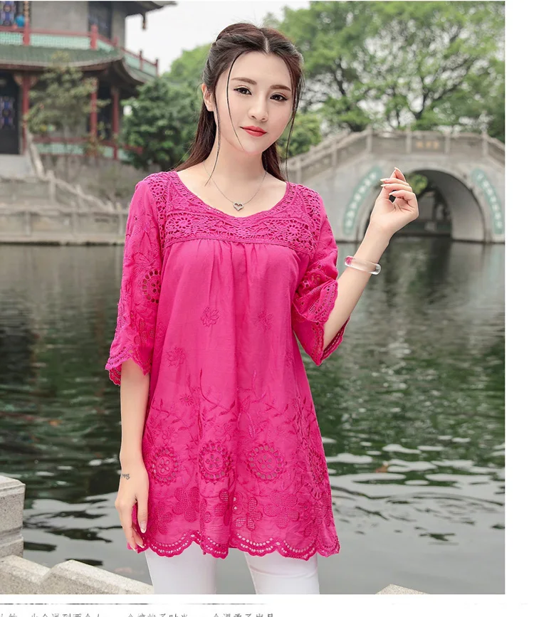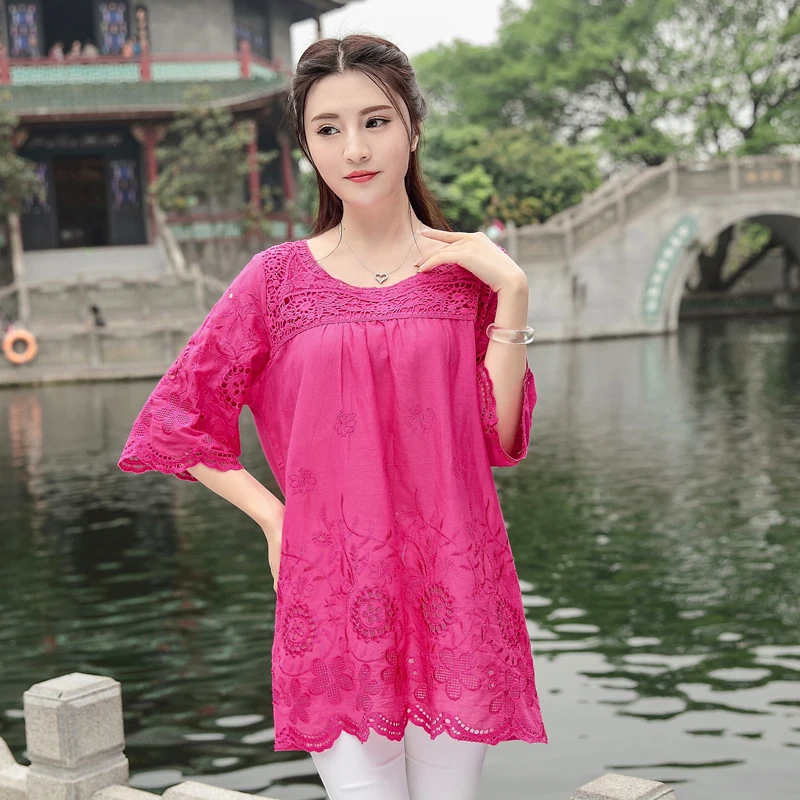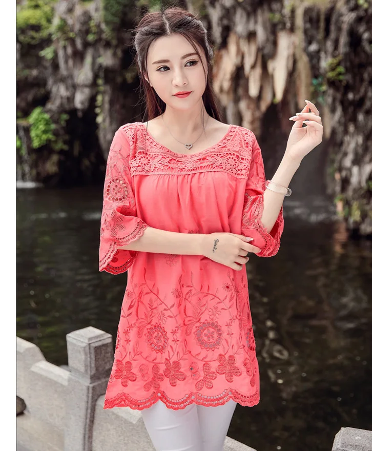 Blusas mujer de moda 2018:Dark pink white blue red green