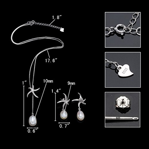 -. Title : EleQueen 925 Sterling Silver Pave CZ AAA Cream Freshwater Cultured Pearl Teardrop Starfish Bridal Pendant Necklace Earrings Set Clear