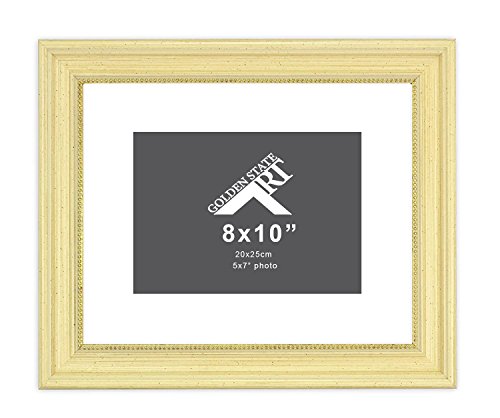 -. Binding : Kitchen -. Brand : Golden State Art -. Color : Dark Gold -. Feature : New Ornate Frame with Real Glass. Color: Dark Gold & very Light patterns. / Includes a White mat with white core (opening size: 4.5" x 6.5"). / For Pictures: 8x10 (without Mat) or 5x7 (with white mat and white core). / Overall Frame size: 10 x 12 inches / Real Glass with Easel Stand on the back and 2 hangers for vertical and horizontal hanging options. -. IsAutographed : 0 -. Label : Golden State Art -. Manufacturer : Golden State Art -. Model : GSA-M-GC069-1465-BX-810-02-S-SF0234 -. PackageQuantity : 1 -. ProductGroup : Home -. ProductTypeName : HOME -. Publisher : Golden State Art -. Size : 8x10 for 5x7 Photo -. Studio : Golden State Art -. Title : Golden State Art, 8x10 Frame for 5x7 Photo with White Mat, Table-Top Easel Stand, & Real Glass