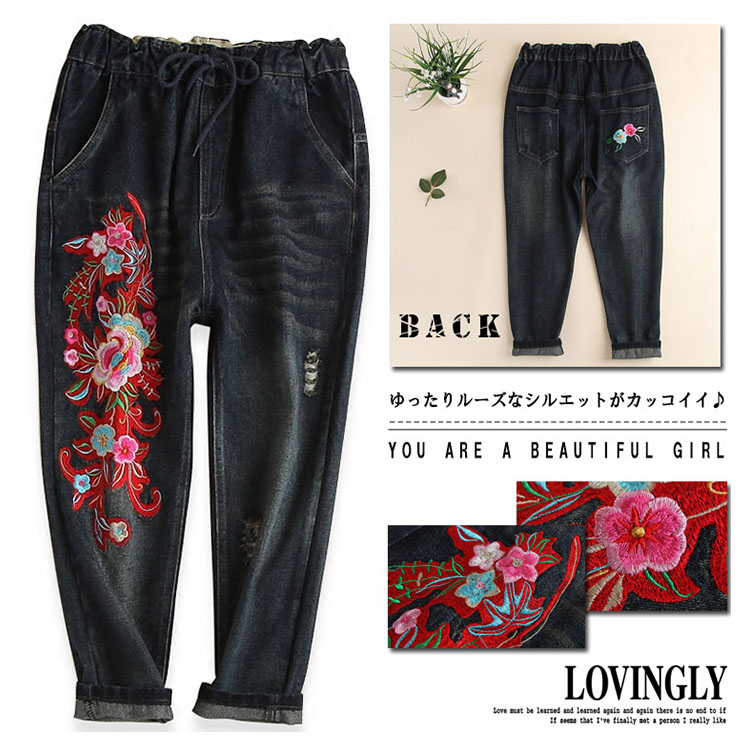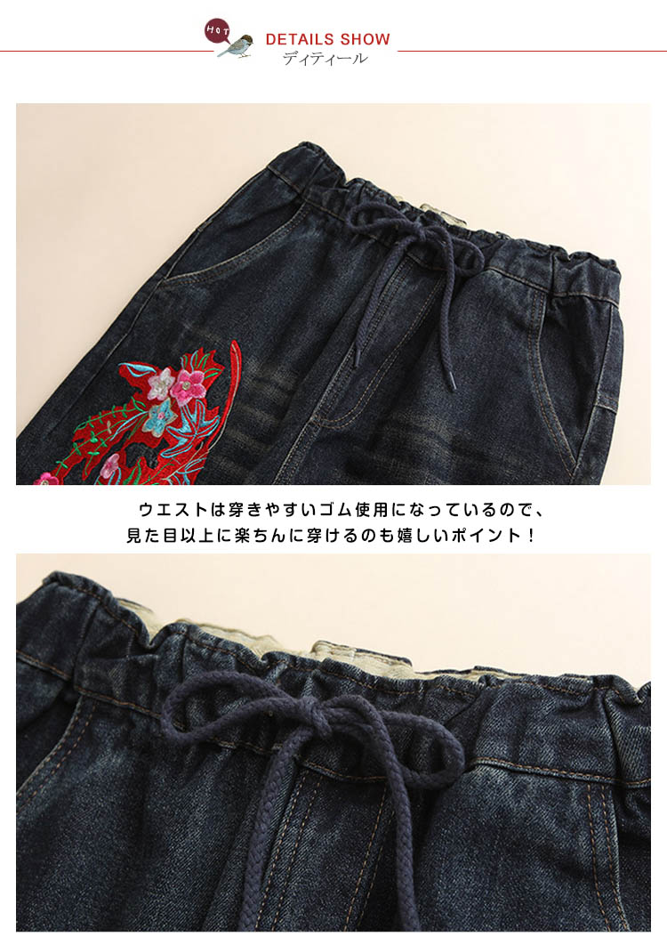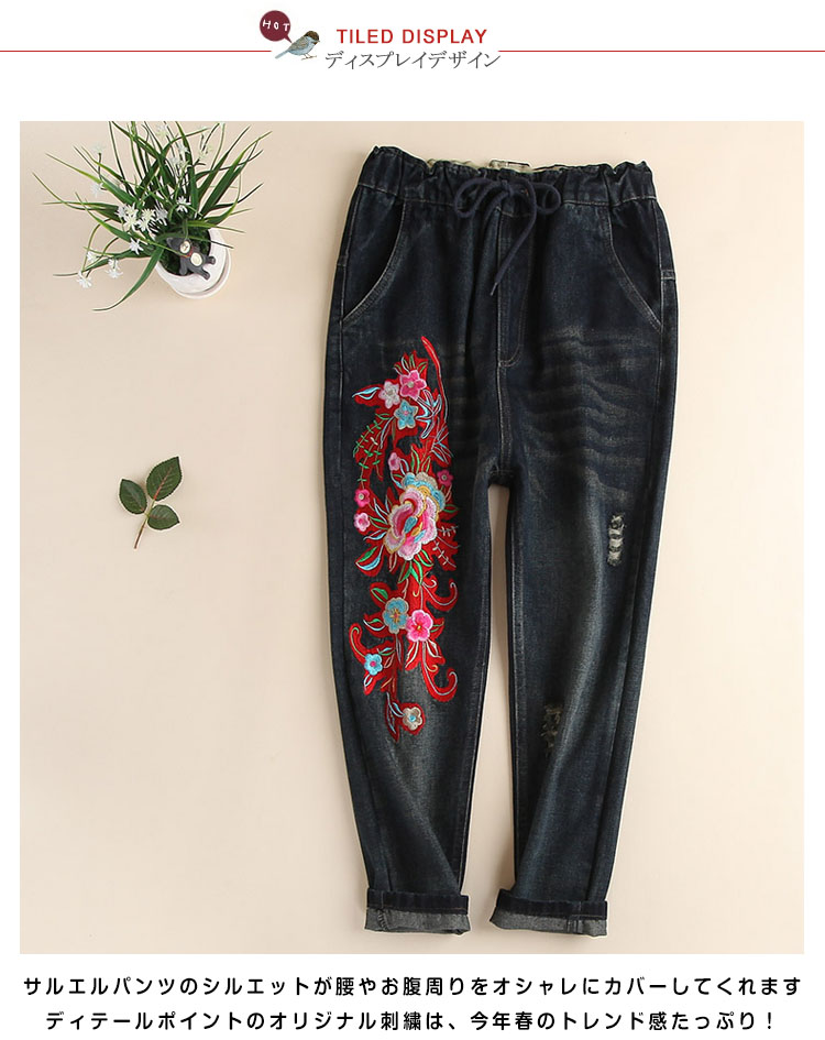 | ゆったりルーズなシルエットがカッコイイ♪サルエルパンツのシルエットが腰やお腹周りをオシャレにカバーしてくれます♪ディテールポイントのオリジナル刺繍は、今年春のトレンド感たっぷり! しっかりとしたジーンズ生地でオールシーズン大活躍してくれます★ | |