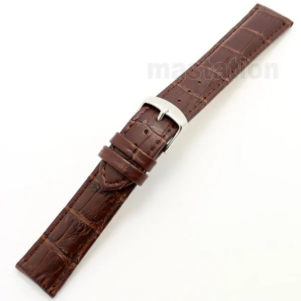 브라운 24 미리메터 폭 Fshion 스타일 정품 가죽 손목 시계 밴드 스트랩 스테인레스 스틸 버클 남성 여성 + 2 봄 바
