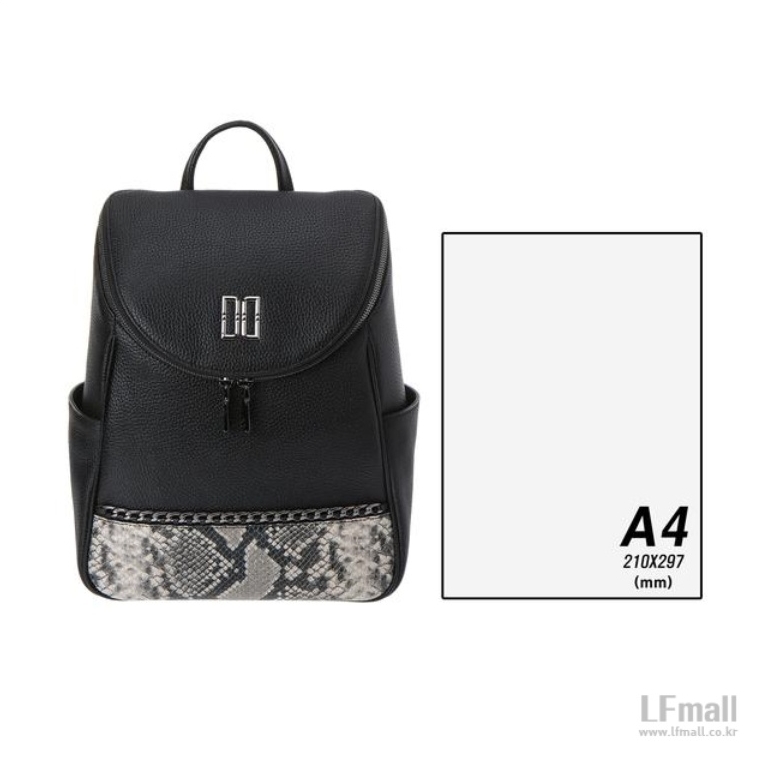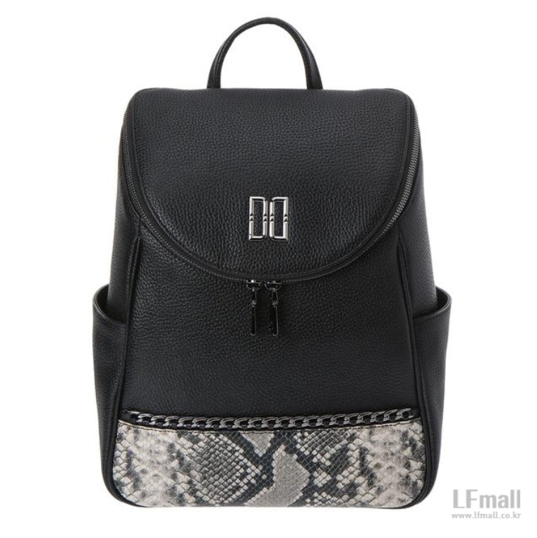 블랙 컬러감에 프린팅 배색으로 포인트를 주었으며 체인 장식 디테일로 유니크한 외관의 백팩입니다.