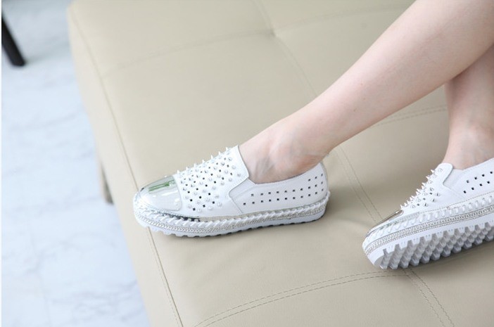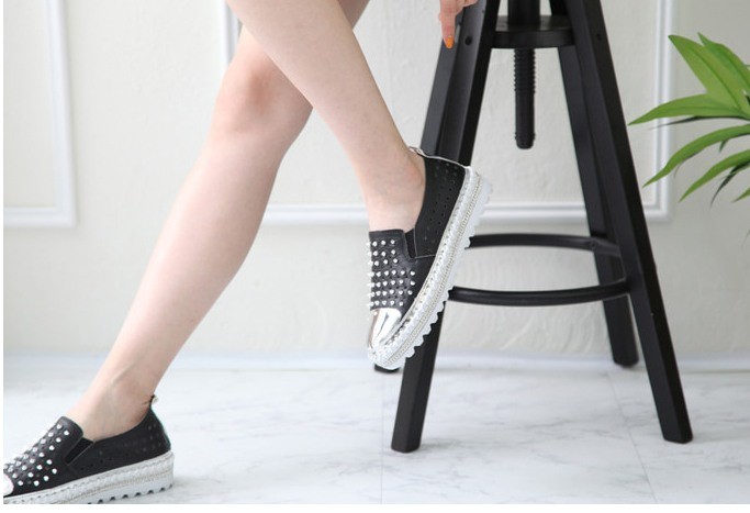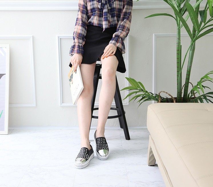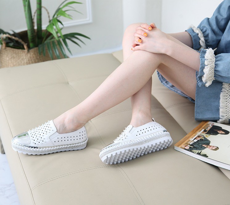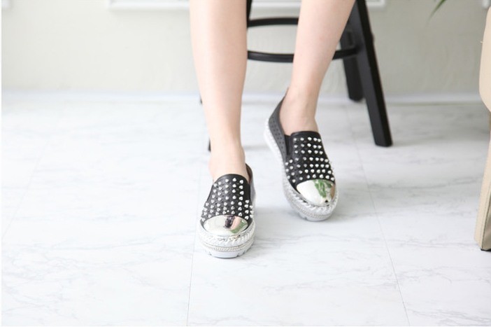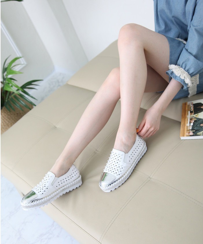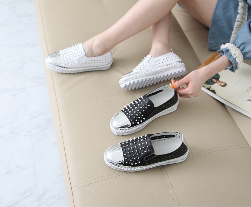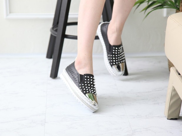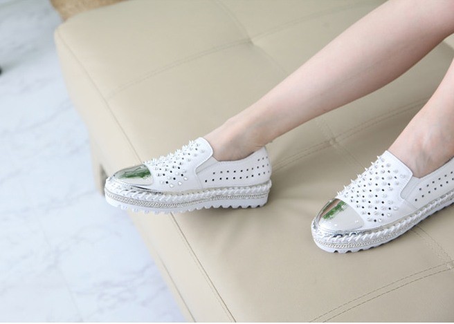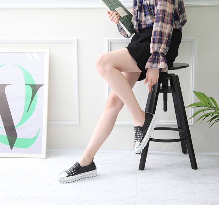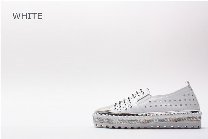 商品名:スリッポン レディース スニーカー スタッズ 本革 2018 春 ファッション 靴 婦人靴