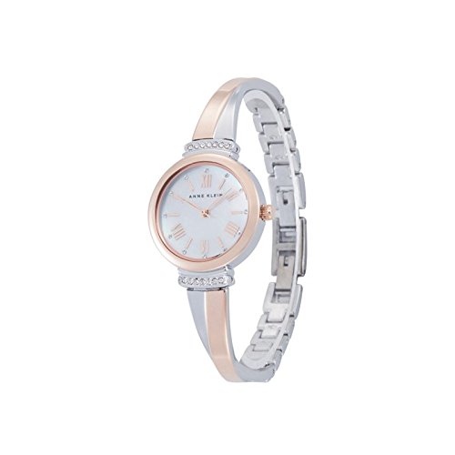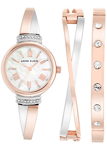 -. Binding : Watch -. Brand : Anne Klein -. Color : Rose Gold/Silver -. Department : womens -. EAN : 0086702578832 -. Feature : Lugs set with 14 clear Swarovski crystals; mother-of-pearl dial with rose gold-tone hands and Swarovski crystal accented markers; two-tone "x" bangle with adjustable end links; jewelry clasp closure / Set includes two jewelry clasp closure bangles: 1 rose gold-tone with 6 clear Swarovski crystals and 1 rose gold-tone and silver-tone "x" shaped / Japanese-quartz Movement / Case Diameter: 26mm / Water Resistant To 30m (100ft): In General, Withstands Splashes or Brief Immersion In Water, but not Suitable for Swimming or Bathing -. Label : AK Anne Klein -. Manufacturer : AK Anne Klein -. Model : AK/2245RTST -. MPN : AK/2245RTST -. PackageQuantity : 1 -. PartNumber : AK/2245RTST -. ProductGroup : Watch -. ProductTypeName : WATCH -. Publisher : AK Anne Klein -. Studio : AK Anne Klein -. Title : Anne Klein Women's AK/2245RTST Swarovski Crystal Accented Rose Gold-Tone and Silver-Tone Bangle Watch and Bracelet Set -. UPC : 086702578832