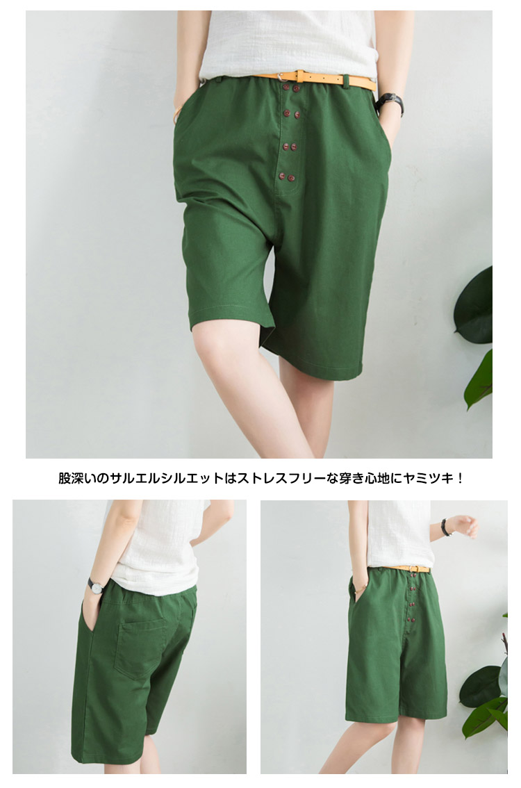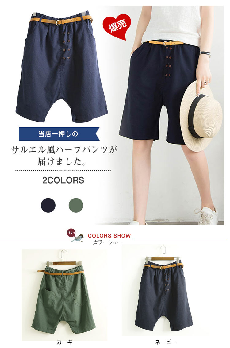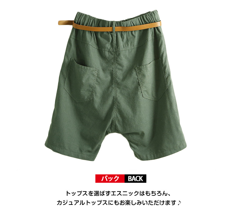 | 当店一押しのサルエル風ハーフパンツが届けました。股深いのサルエルシルエットはストレスフリーな穿き心地にヤミツキ!ゆったりウエスト&たっぷりフォルムで楽?に穿けちゃいます♪ハーフ丈なのでアクティブにもピッタリ♪トップスを選ばずエスニックはもちろん、カジュアルトップスにもお楽しみいただけます♪ | |