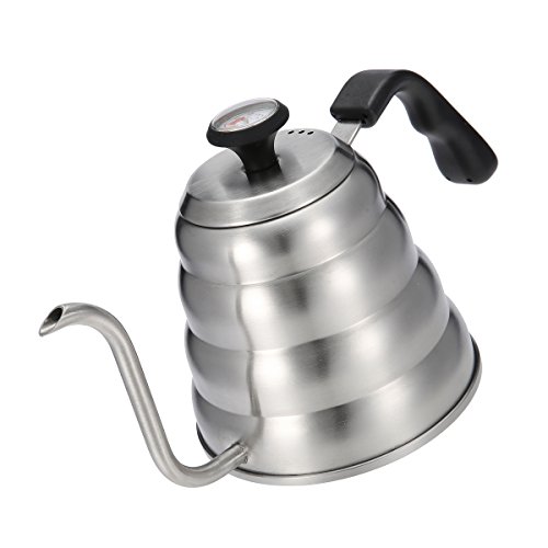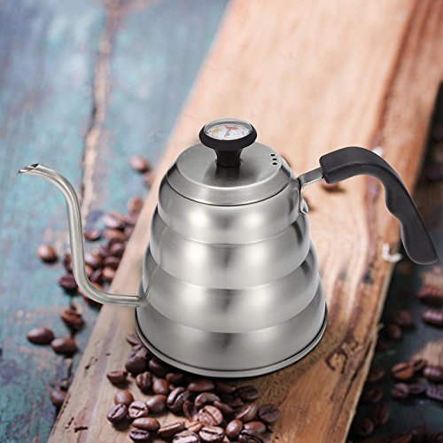 Studio : KINGSO Publisher : KINGSO Binding : Misc. Product Description 1.2L with a thermometer matte stainless steel coffee pot, kettle, teapot with sponge brush Capacity: 1.2L Material: stainless steel, plastic, rubber (1) thermal conductivity: 430 stainless steel, good thermal conductivity. (2) capacity: 1.2L capacity, can cook 5-7 cups of coffee. (3) thermometer pot lid: can keep abreast of the liquid temperature inside the pot to control the best temperature state. (4) intimate design: black plastic handle, pot top rubber jacket, to avoid burns. (5) shape: cloud shape design, black and metal with, simple retro. (6) equipped with sponge brush: easy to clean. (7) can be used direct fire heating, can also be placed in the induction cooker heating. The product includes: With a thermometer coffee pot X1 Sponge brush X1 package: White box packaging 0