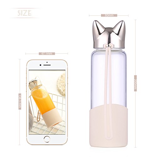 This glass water bottle with sleeve is a good accompany for children or girls. Cute bottle with easy carrying loop, accompany you for the whole summer day. Feature: Healthy and environmental proof Borosilicate glass of the bottle for durable use Food grade PP of the lid is strong enough for using Wide mouth design for easy cleaning and flowing Cute but large capacity Its cute size just for comfortable holding Soft sleeve prevents high temperature and bumping 300ml easy meet your need for a short trip or outdoors Specification: Capacity: 350ML / 12OZ